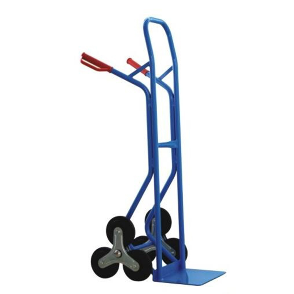 Stair trolley that has a simple three-wheeled design to help carry loads upstairs and kerbs. It can carry up to 50kg when used on stairs and is a simple and safe way to move loads up and down stairs.
