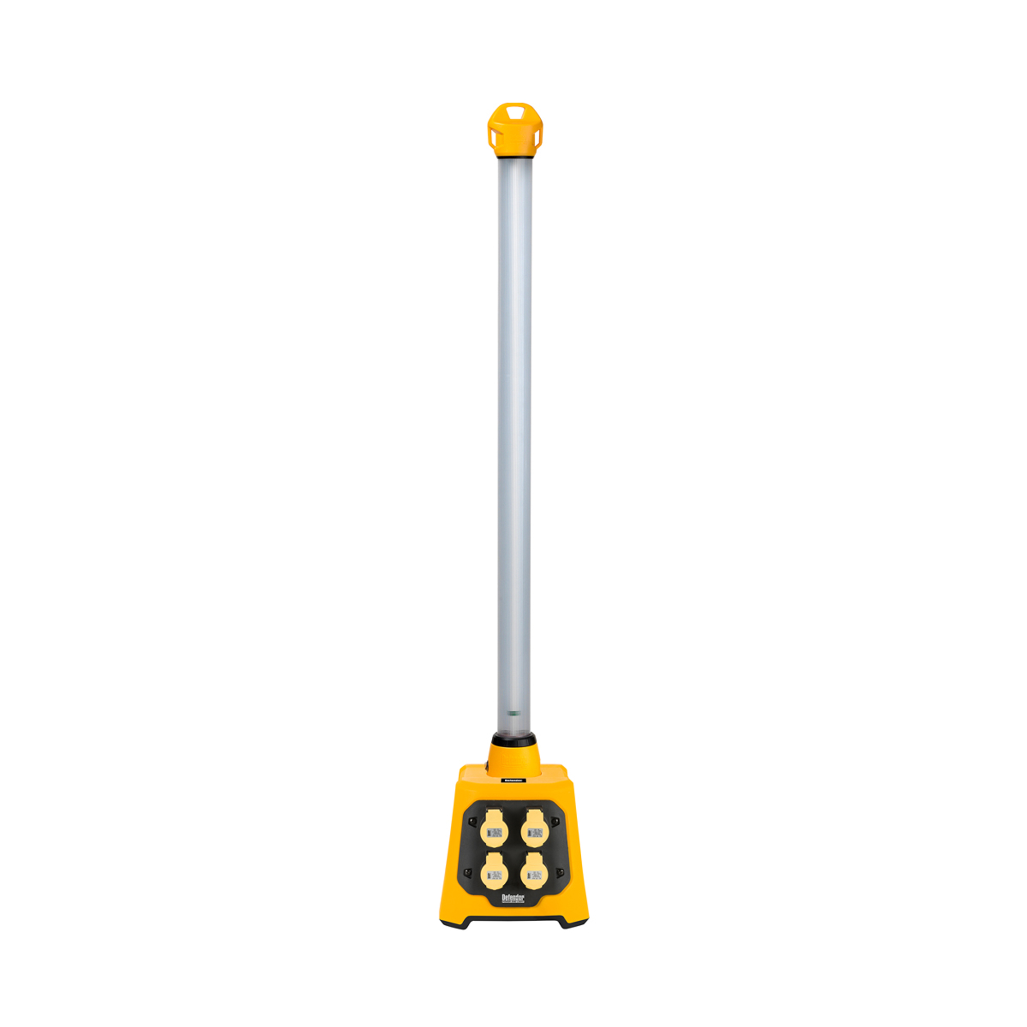 Fluorescent uplight for use on site as it produces a shadow-free illumination. It is ideal when plastering or painting and is powered using 110V making it safe. It features 4 power take-offs on the bottom of the stand and units can be linked together if needed. It is easy to place where needed thanks to being lightweight and the light doesn’t take up much space thanks to the upright design.