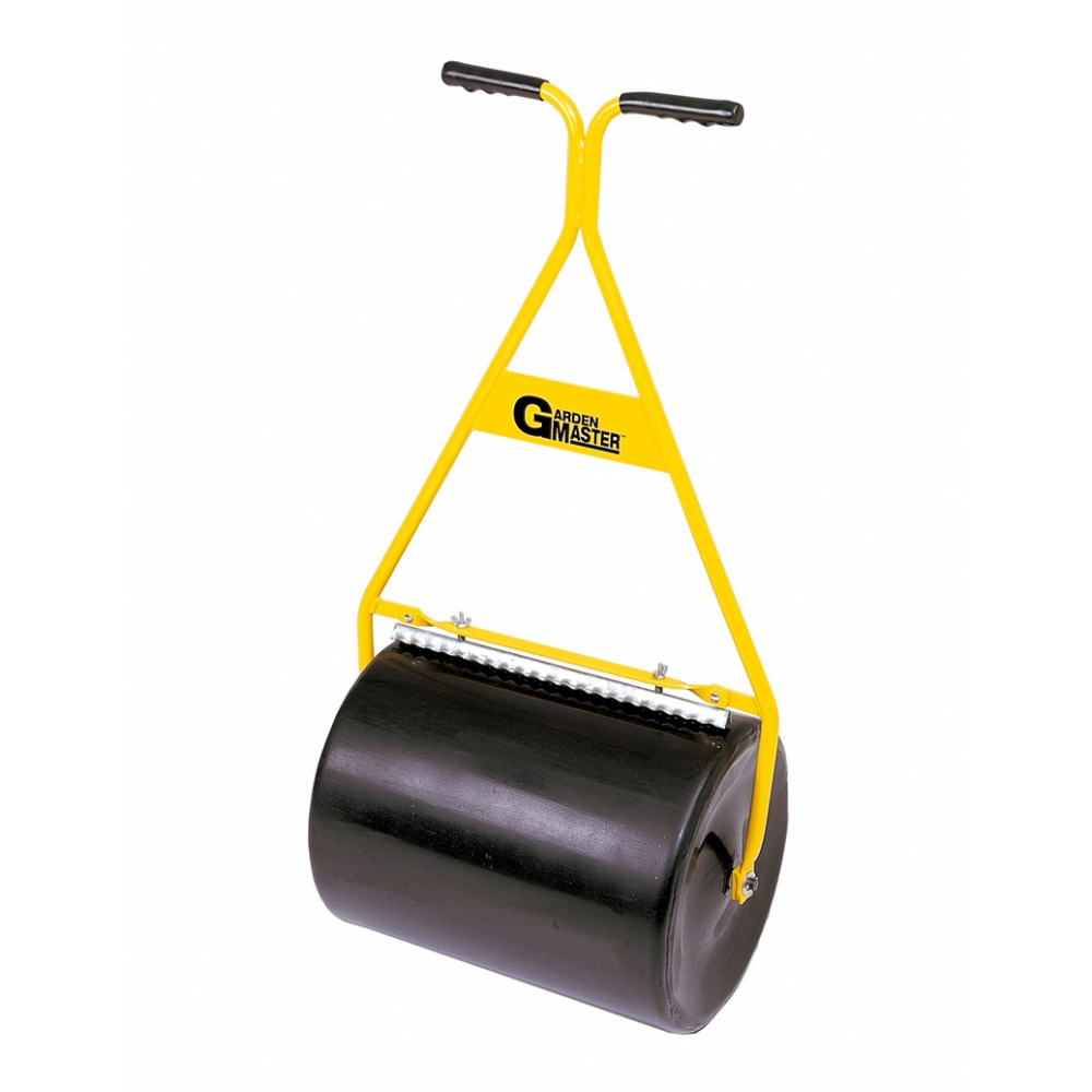 Garden roller used when laying new lawn. It can be filled with water to increase the weight and without the water, it is easy to transport and manoeuvre.