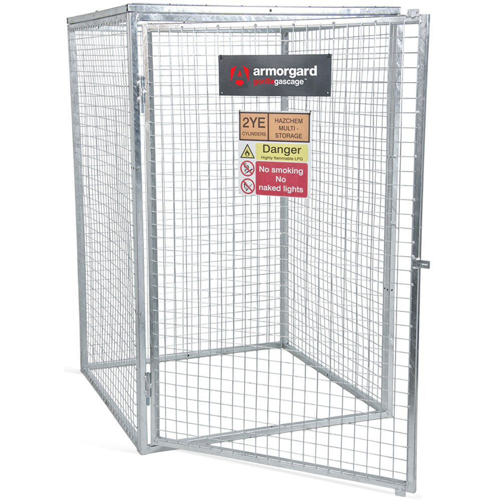 Galvanised Gas Cage ideal for storing and securing gas cylinders. Individual panels bolt together easily and it can be dismantled quickly when not in use. There is a padlock point to secure the cage and relevant signage is attached.