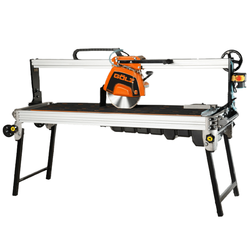 The Golz GS350A tile cutter is ideal for cutting various types of tile up to 1500mm in length. The cutting head is adjustable up to 45 degrees and it features a removable water tub for easy cleaning. Foldable legs make transporting the cutter easier, along with a handle and wheels. It can fit a blade up to 350mm and can cut to a depth of 110mm.