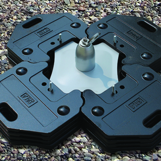 Counterweight man anchor system that uses weights and does not attach to the working surface reducing the possibility of damage. It features a built-in shock absorbing post for added safety and is used for fall arrest and restraint for one worker. It is approved for use on many different roof types including concrete, single ply membrane, bitumen, asphalt sanded and asphalt stone chippings. It is suitable on flat surfaces up to a maximum 5-degree slope and is easy to transport and set up thanks to its design.